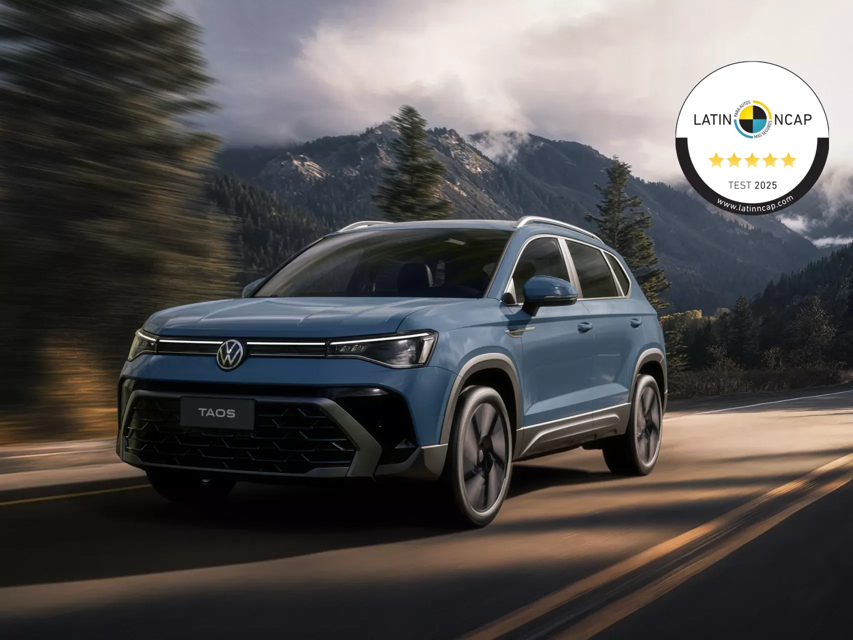 El Volkswagen Taos recibió 5 estrellas en el nuevo protocolo de pruebas de Latin NCAP (2020-2025), que evalúa el nivel de seguridad entregado por los vehículos vendidos en América Latina y Caribe.